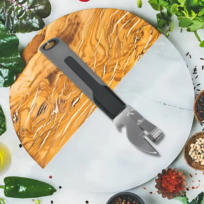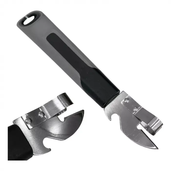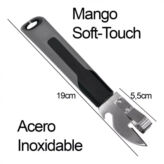 Abrelatas de Uña con Destapador de CervezaLargo total: 19cmMaterial: Metal - plastico - silicona