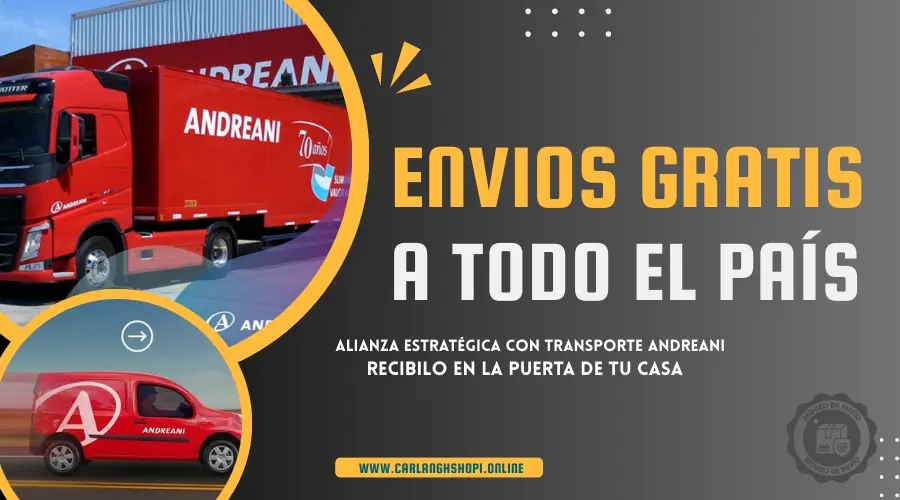 En Carlangh Shop queremos que tu experiencia de compra sea completa, por eso trabajamos con Andreani, una de las empresas de logística más reconocidas de Argentina.