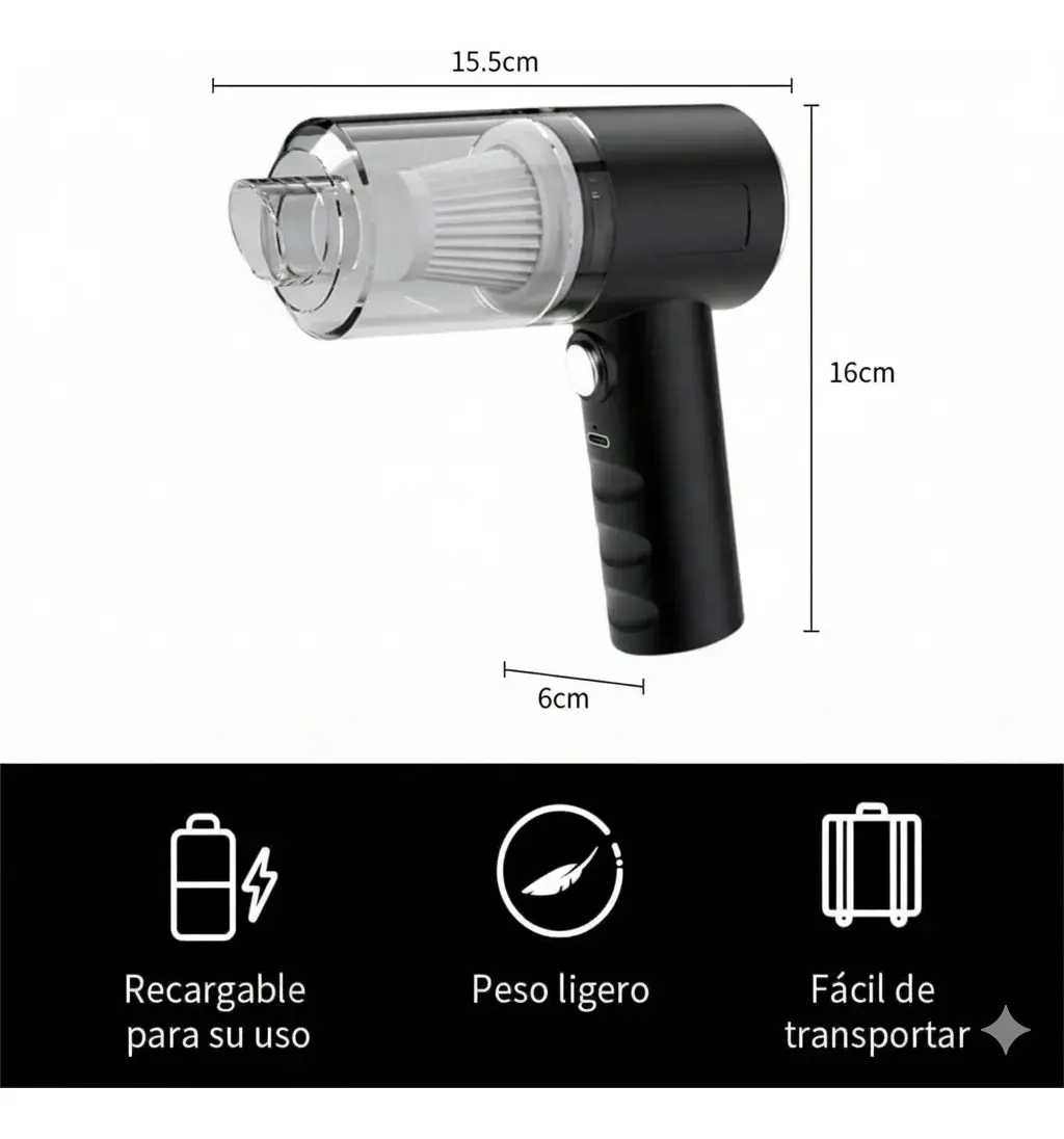 En Carlangh Shop nos preocupamos por tu tranquilidad y la eficiencia de tu limpieza. Por eso, tu Aspiradora Portátil 3 en 1 cuenta con: