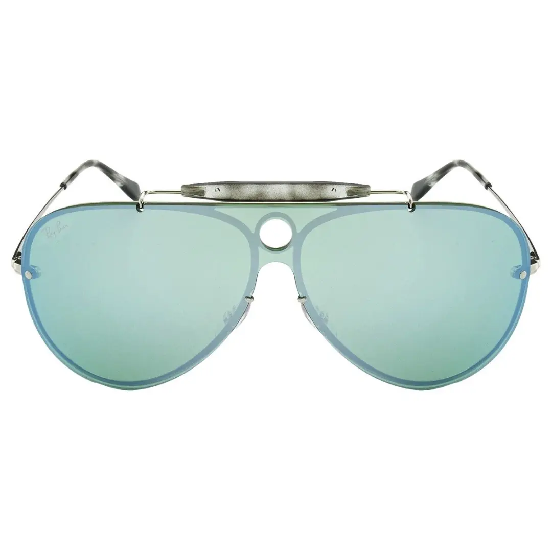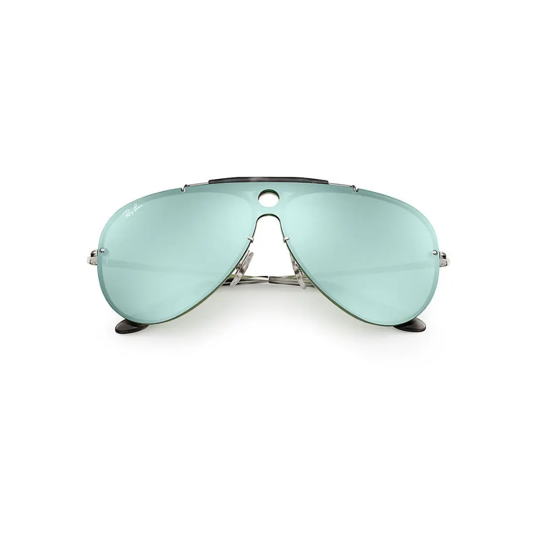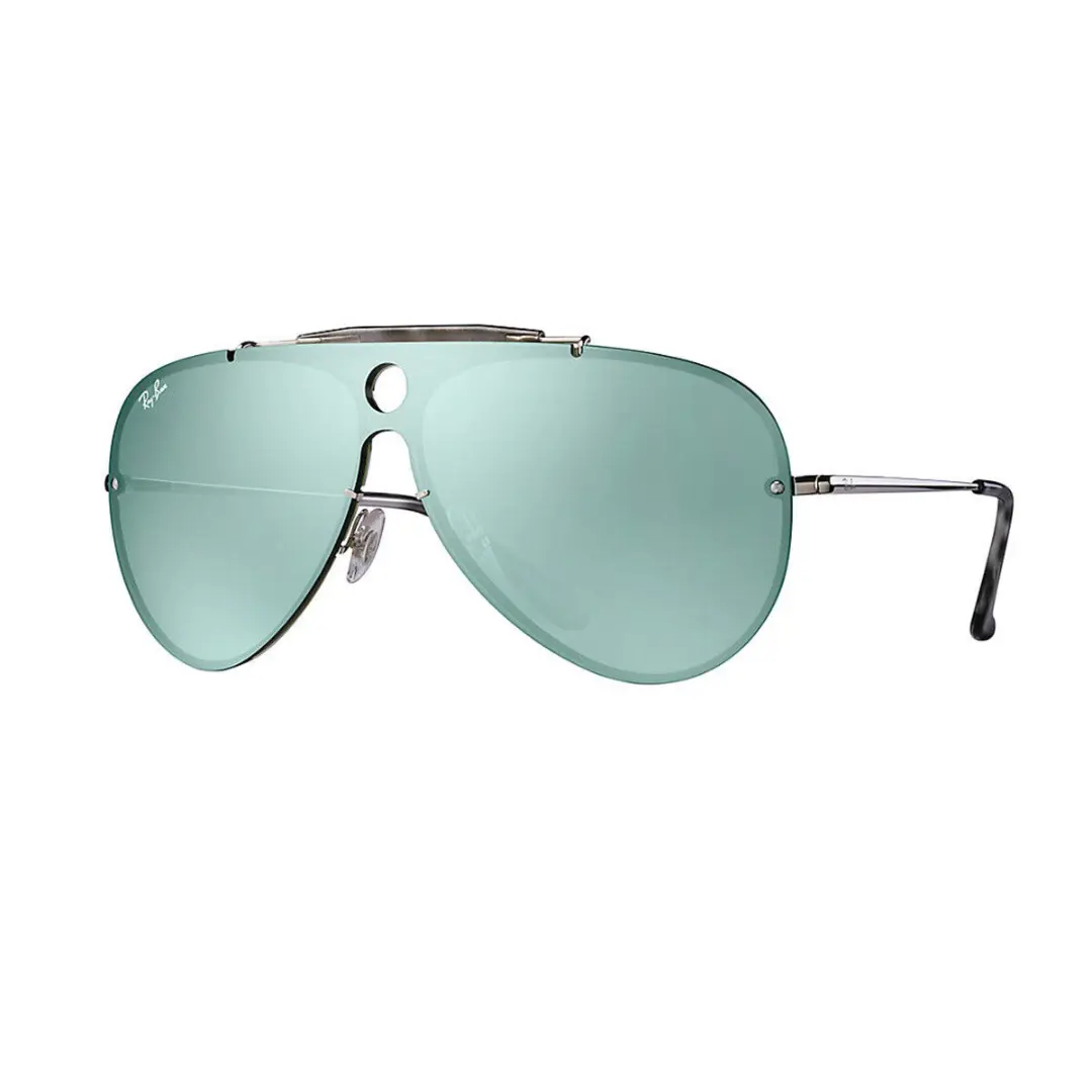 Los Ray-Ban Blaze Shooter Turquesa Plata Espejado combinan el diseño audaz del icónico modelo Shooter con la estética futurista de la línea Blaze, creando un accesorio que destaca desde cualquier ángulo. Su armazón metálico y su lente plana tipo “shield” ofrecen un look contemporáneo y dinámico, mientras que las lentes espejadas en tonalidades turquesas y plateadas aportan un toque vibrante, moderno y lleno de energía.