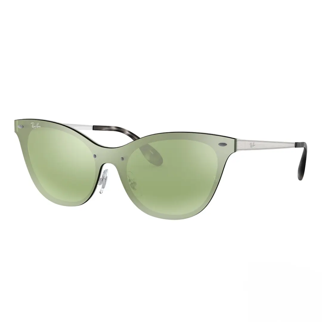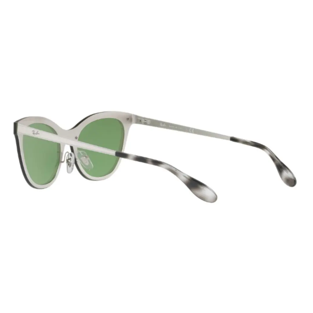 Los Ray-Ban Cat Eye Blaze Verde Espejado combinan la silueta felina clásica con la estética moderna y audaz de la línea Blaze, creando un diseño único que destaca por su personalidad y sofisticación. Su lente plana tipo shield en tono verde espejado aporta un brillo vibrante y contemporáneo, perfecto para quienes buscan un accesorio que marque tendencia.
