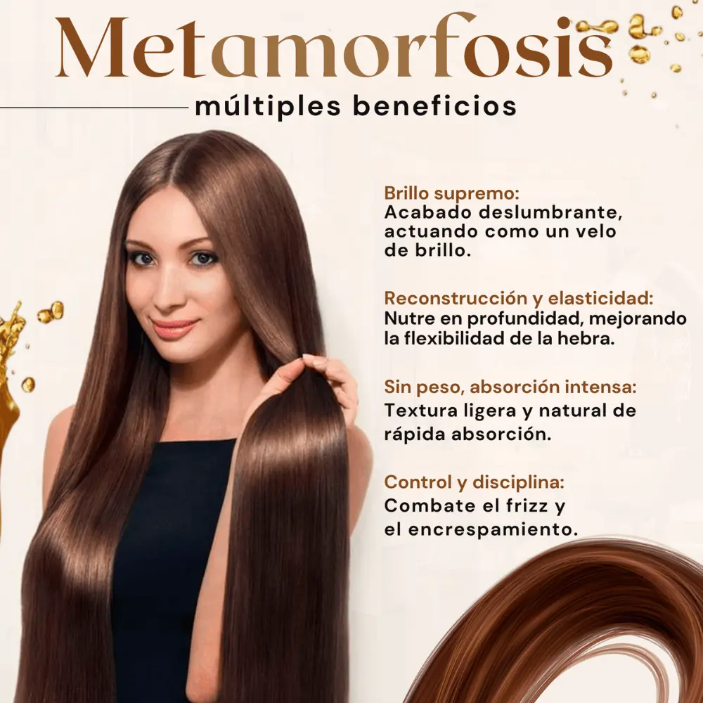 Tu cabello habla de vos. La mascarilla con colágeno penetra profundamente la fibra capilar, devolviendo fuerza, elasticidad y suavidad, mientras que el aceite antifrizz sella las puntas, controla el encrespamiento y aporta un brillo espectacular sin dejarlo pesado.