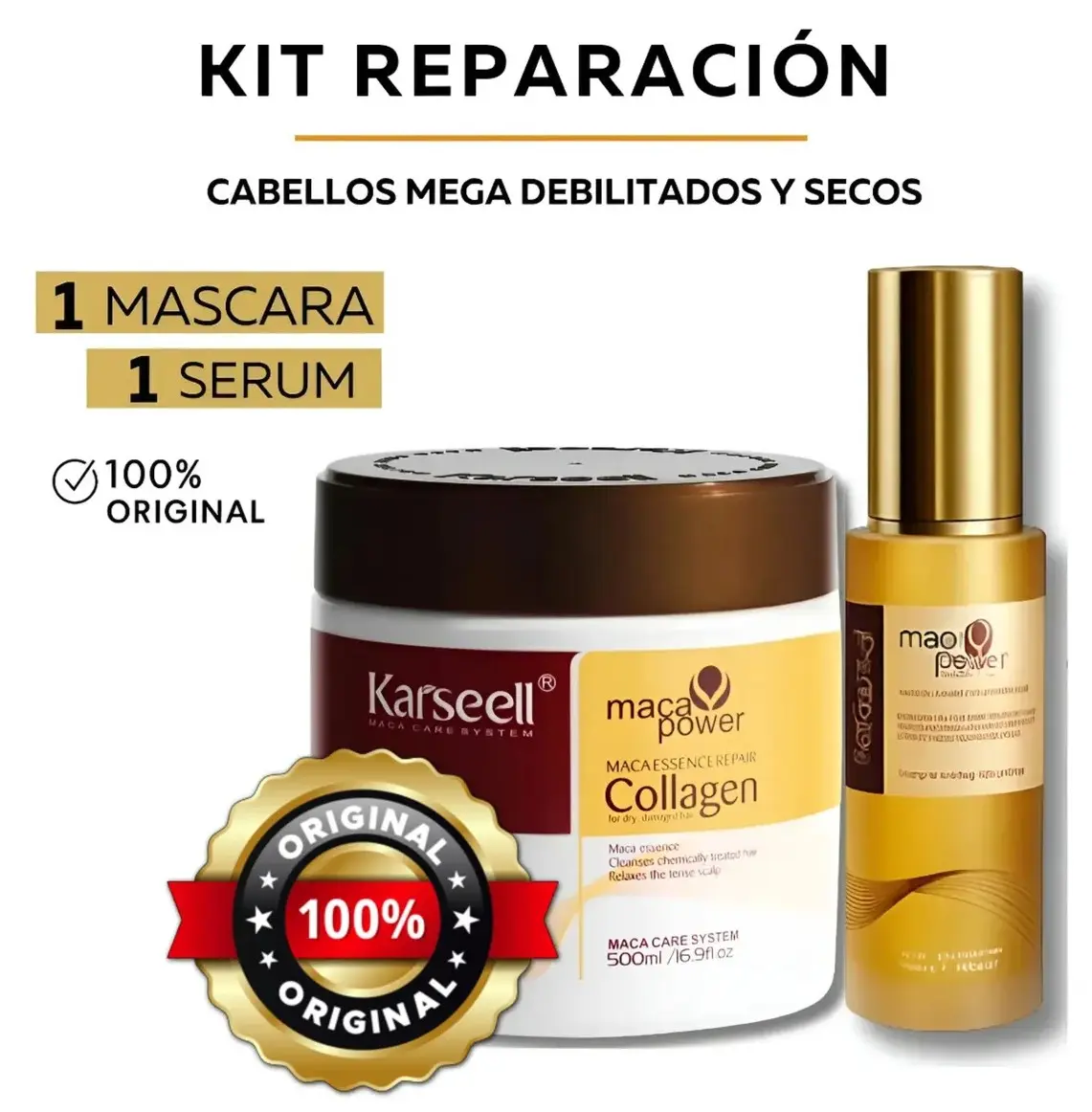 El Combo Capilar Karseell Collagen 500ML + Aceite Antifrizz Karseell actúa directamente donde tu cabello más lo necesita.