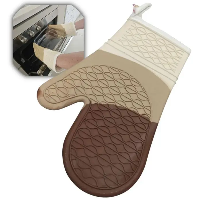Protegé tus manos del calor con este práctico guante de silicona, ideal para manipular bandejas, fuentes y utensilios calientes en la cocina. Su diseño marmolado moderno y su superficie antideslizante brindan un agarre seguro y cómodo.