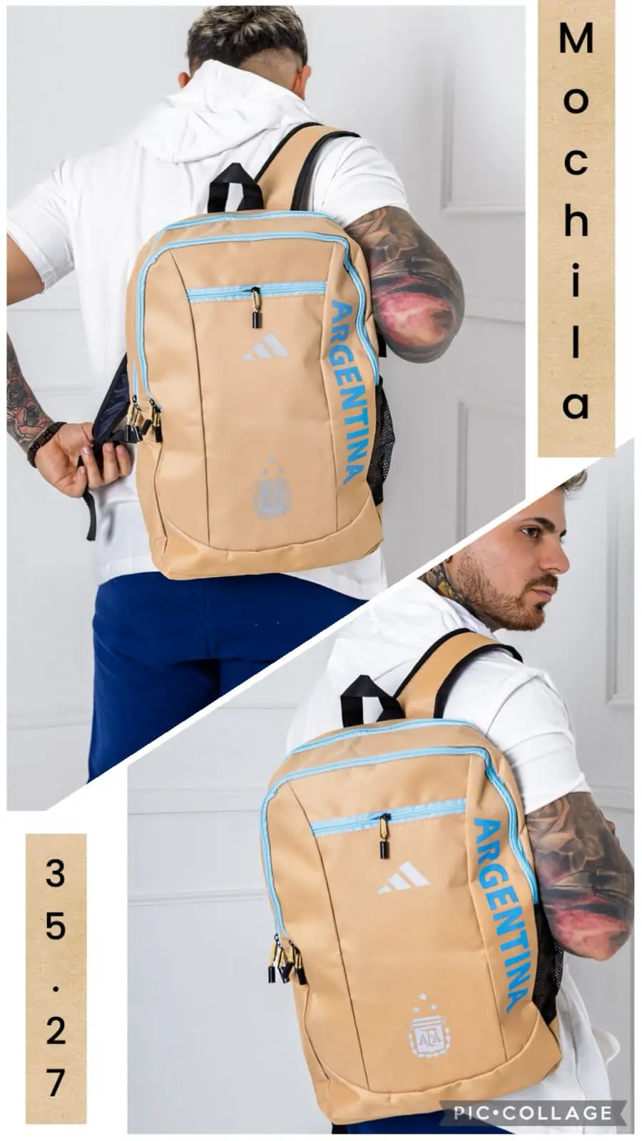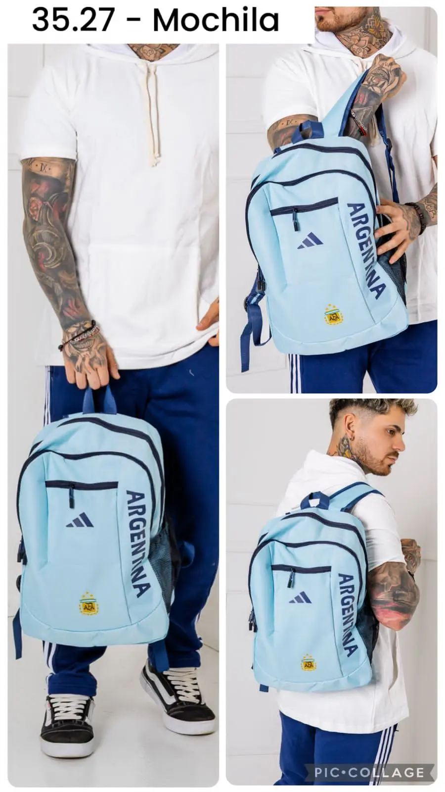 Su diseño moderno con detalles celestes y la inscripción ARGENTINA le da un look único, combinando resistencia, funcionalidad y estética. Está confeccionada con materiales durables y cuenta con múltiples compartimentos para una mejor organización.