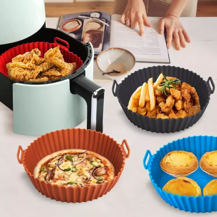 Material de grado alimenticio: bandeja de silicona reutilizable para freidora de aire, hecha de silicona de grado alimenticio, material suave, buena resistencia al calor y temperatura de funcionamiento de -40.0 °F-464.0 °F.