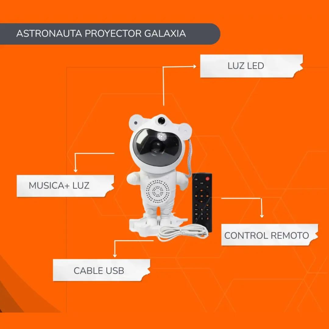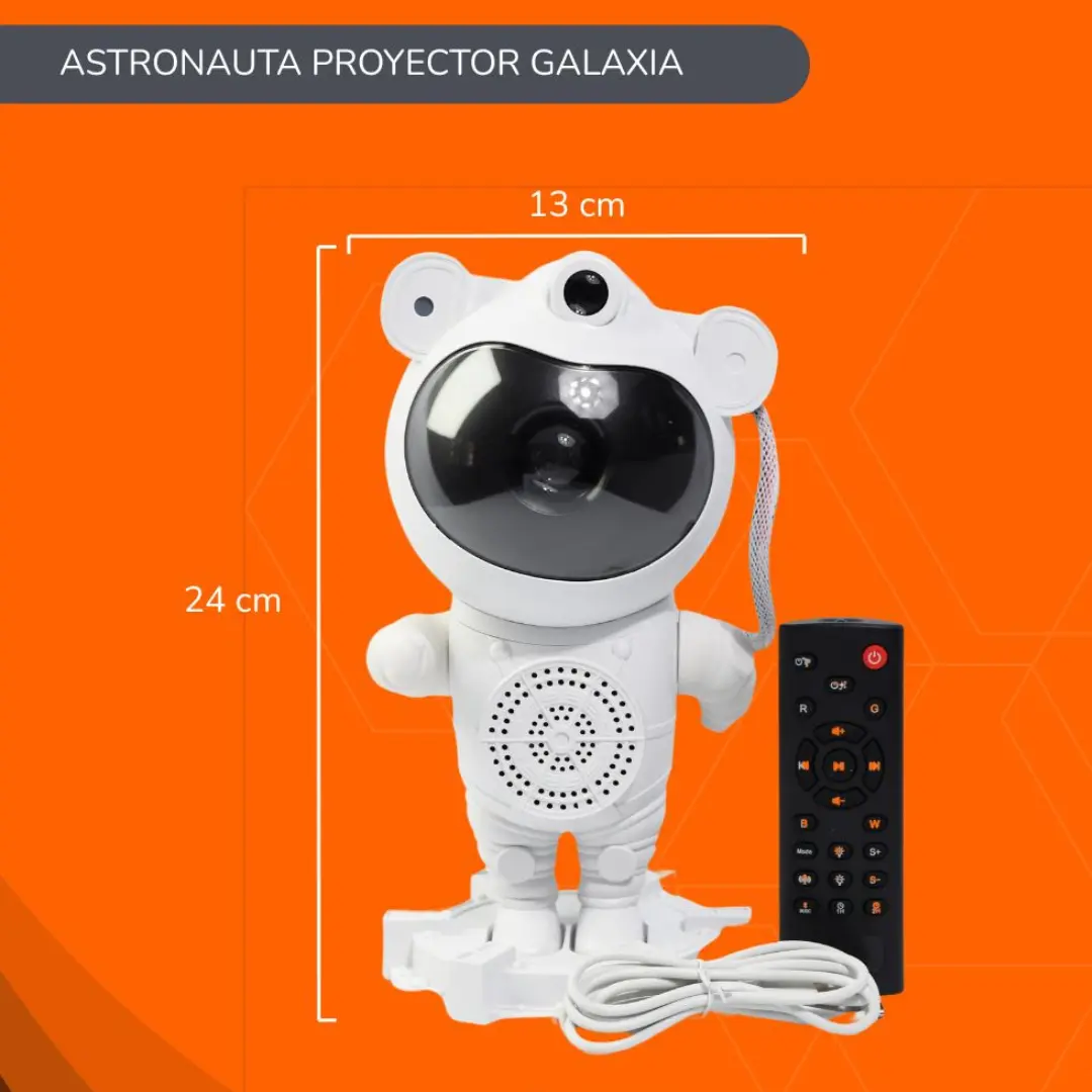 Embárcate en un viaje espacial desde la comodidad de tu hogar con este encantador proyector de estrellas con diseño de astronauta. Transforma cualquier habitación en un impresionante cielo nocturno lleno de nebulosas coloridas y estrellas titilantes. Ideal para crear un ambiente relajante, mágico o divertido en dormitorios, salas de juego o para fiestas temáticas. Un regalo perfecto para niños y adultos amantes del espacio.