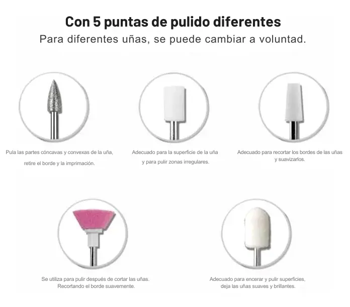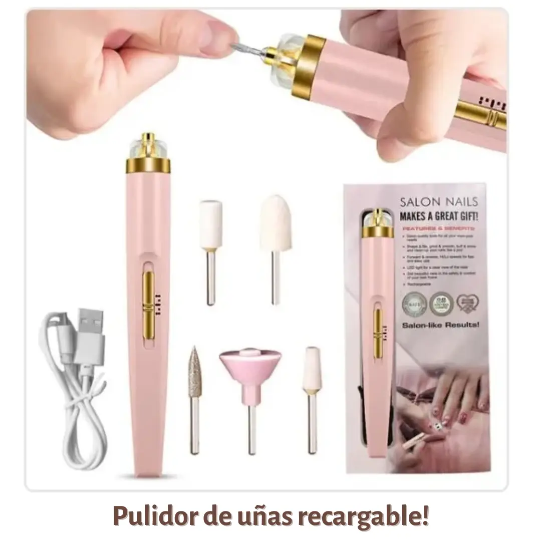 “Olvidate de turnos y esperas. El Pulidor de Uñas Recargable te da resultados de salón en la comodidad de tu hogar.”