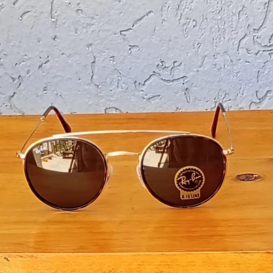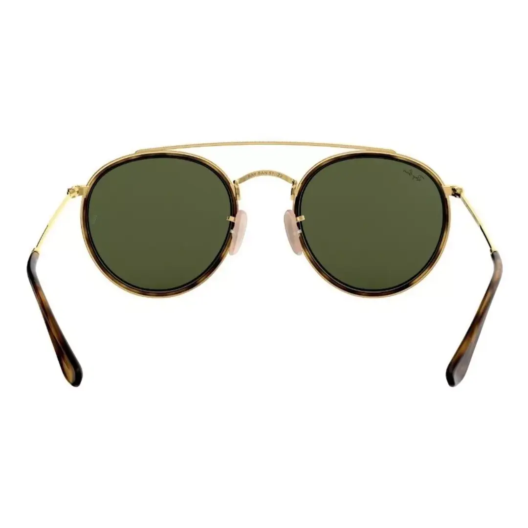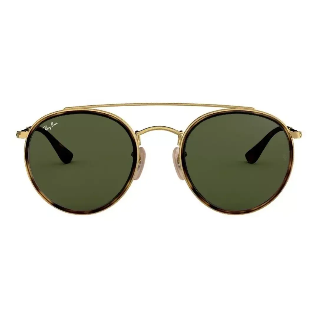 Los Ray-Ban Round Doble Puente Gold Green combinan la elegancia del diseño circular clásico con la sofisticación del doble puente metálico. Su armazón en gold premium aporta un estilo refinado, moderno y atemporal, realzando la estructura ligera y perfectamente equilibrada del modelo.