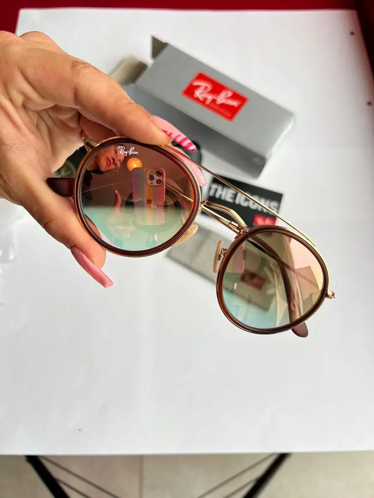 Los Ray-Ban Round Doble Puente Rosa Espejado combinan el encanto retro del diseño redondo con un toque moderno y sofisticado. Su doble puente metálico aporta estructura, estilo y personalidad, elevando el look clásico hacia una estética más audaz y contemporánea.
