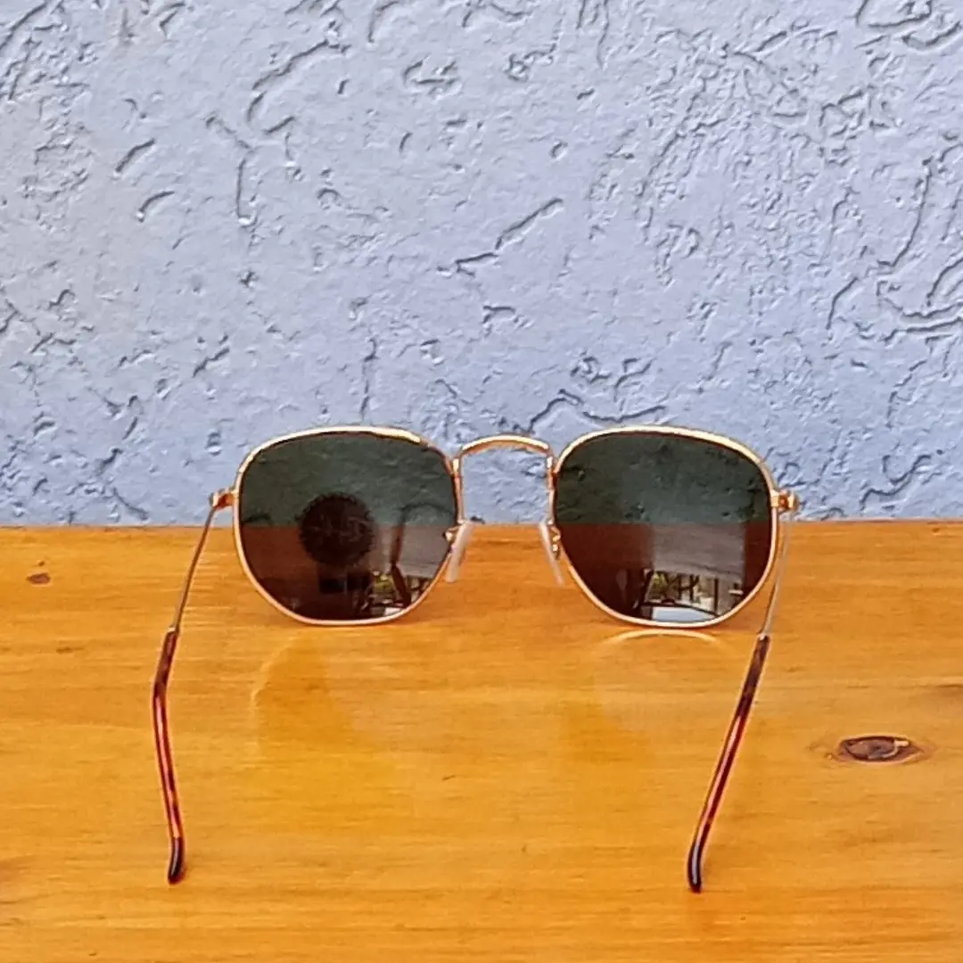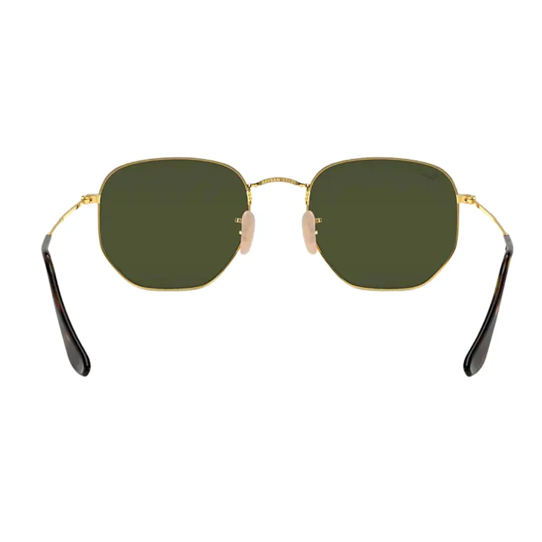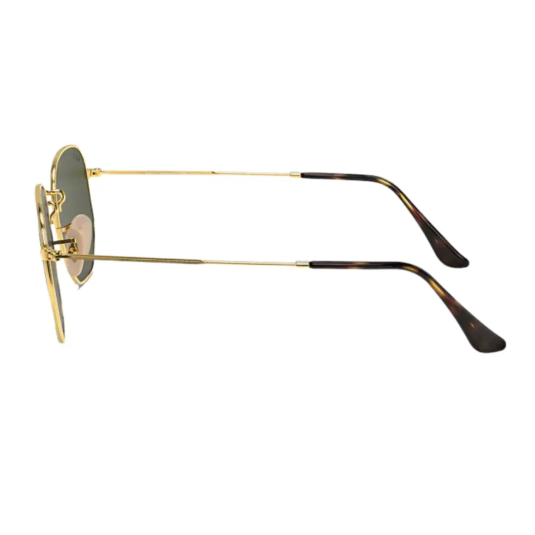 Los Ray-Ban Round Metal Hexagonal Gold Green fusionan lo clásico con un toque moderno y audaz. Su armazón metálico gold aporta elegancia y luminosidad, mientras que la forma hexagonal redefine el icónico diseño redondo con un estilo más geométrico y distintivo.