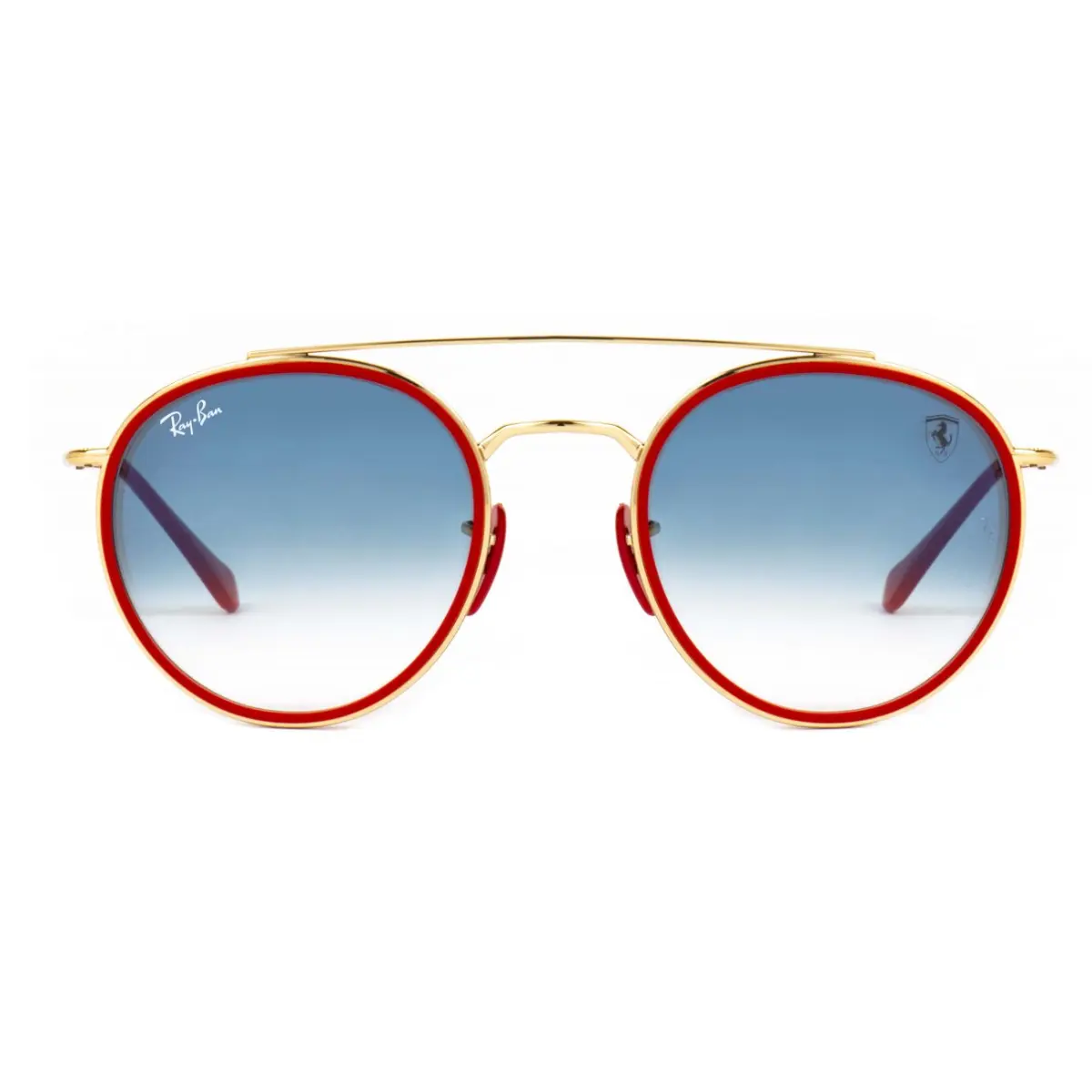 Los Ray-Ban Scuderia Ferrari Double Bridge Dorado Rojo Azul Degradé representan la mezcla perfecta entre diseño de alta gama y el ADN deportivo de la Scuderia Ferrari. Este modelo fusiona líneas modernas con detalles de lujo, transmitiendo fuerza, velocidad y elegancia en una pieza única que honra la ingeniería y estética del automovilismo de élite.