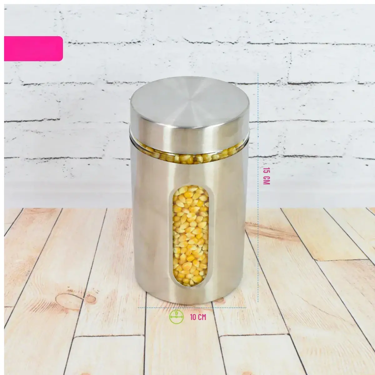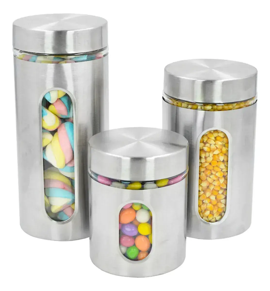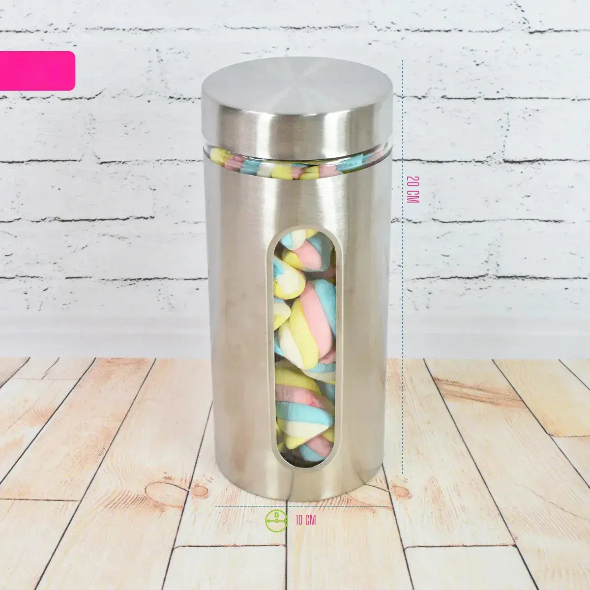 Set x3 tarros para cocinaCierre herméticoMedidas: 10cm / 15cm / 20cmMaterial: Vidrio + Acero inoxidable